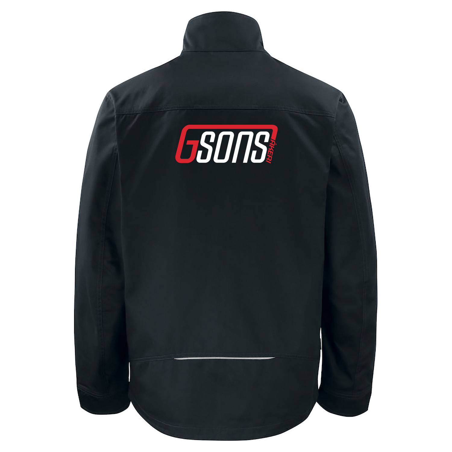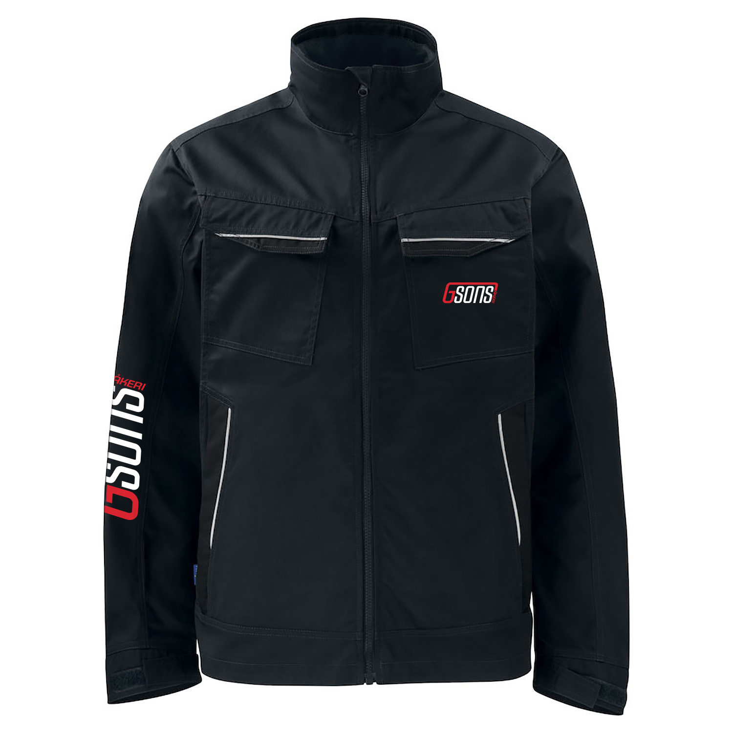 | Märkning | Gsons logo på vänster bröst, röd/vit, 80x30mm, rygg & ärm 250x93mm, transfer |