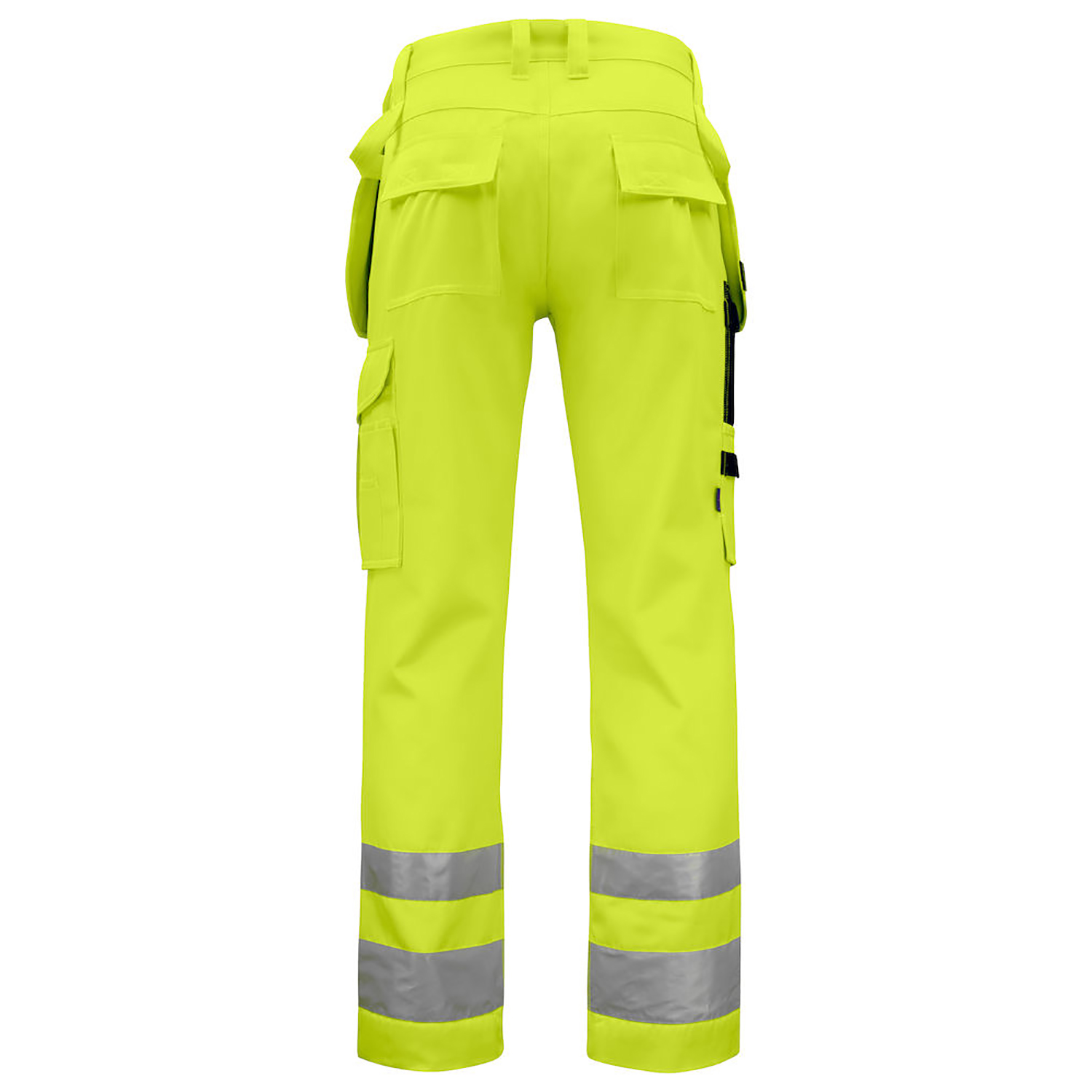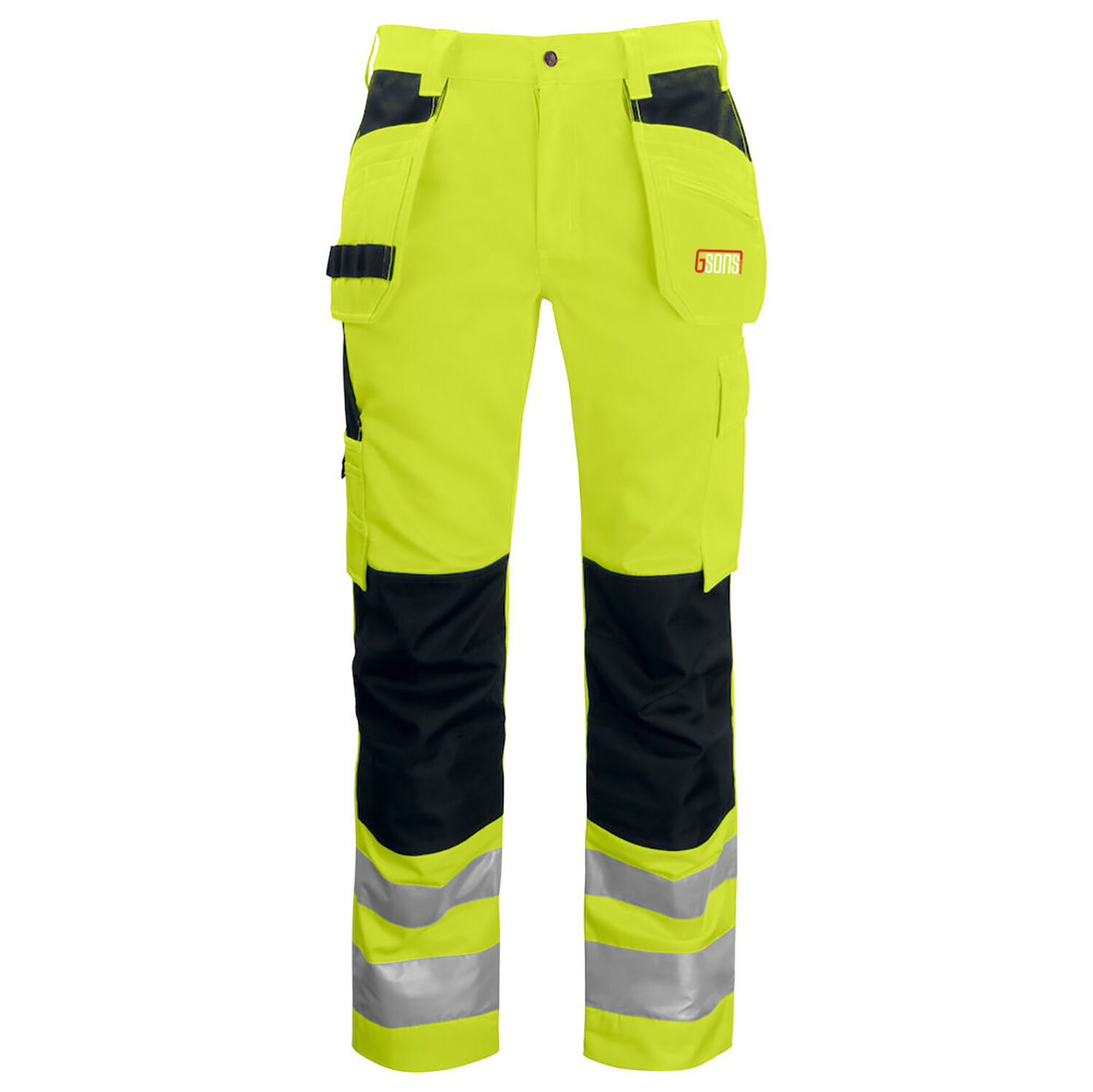 Hantverksbyxa med undanstoppningsbara hängfickor, den vänstra med extra fickor varav den ena försluts med dragkeda, på höger sida öppna fickor samt hållare för verktyg. Benfickor, på vänster sida ficka med övervidd samt telefonficka, försluts med kardborre. På höger sida tumstocksficka samt verktygsficka med knivknapp. Två hammarhankar, en på vardera sida. Bakfickor med lock, försluts med kardborre. Förstärkning i hängfickor, tumstocksfickan och över knäna för ökad slitstyrka. Förböjda knän med knäskyddsfickor som går att reglera i två höjder, öppning inifrån. C42-C64 kan förlängas med 5 cm genom ett utvik i benslutet.