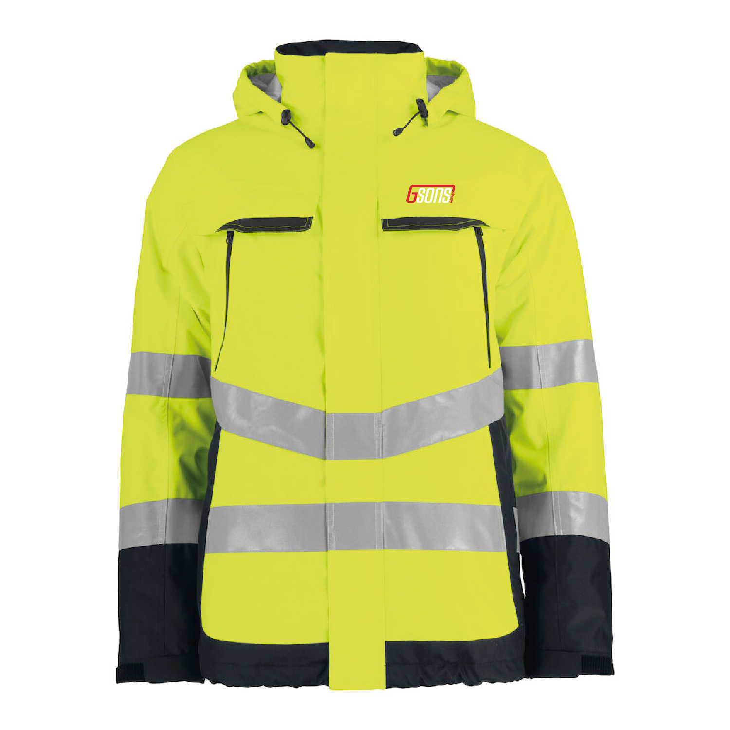 | Märkning | Gsons logo på vänster bröst, röd/vit, 80x30mm & rygg 250x93mm, transfer |